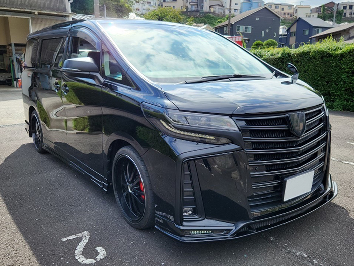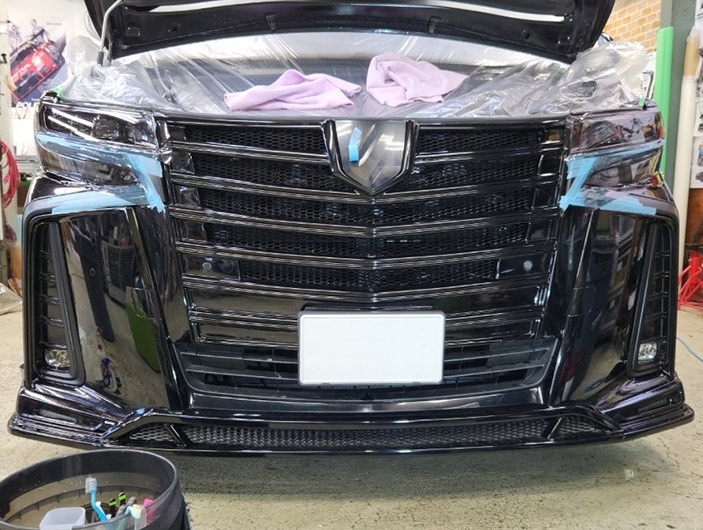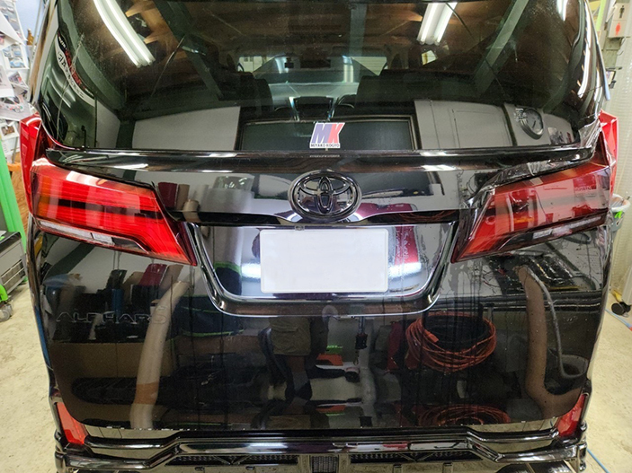 ALPHARDの前後ライトにプロテクションフィルム、メッキモールにラッピングフィルムを施工致しました。